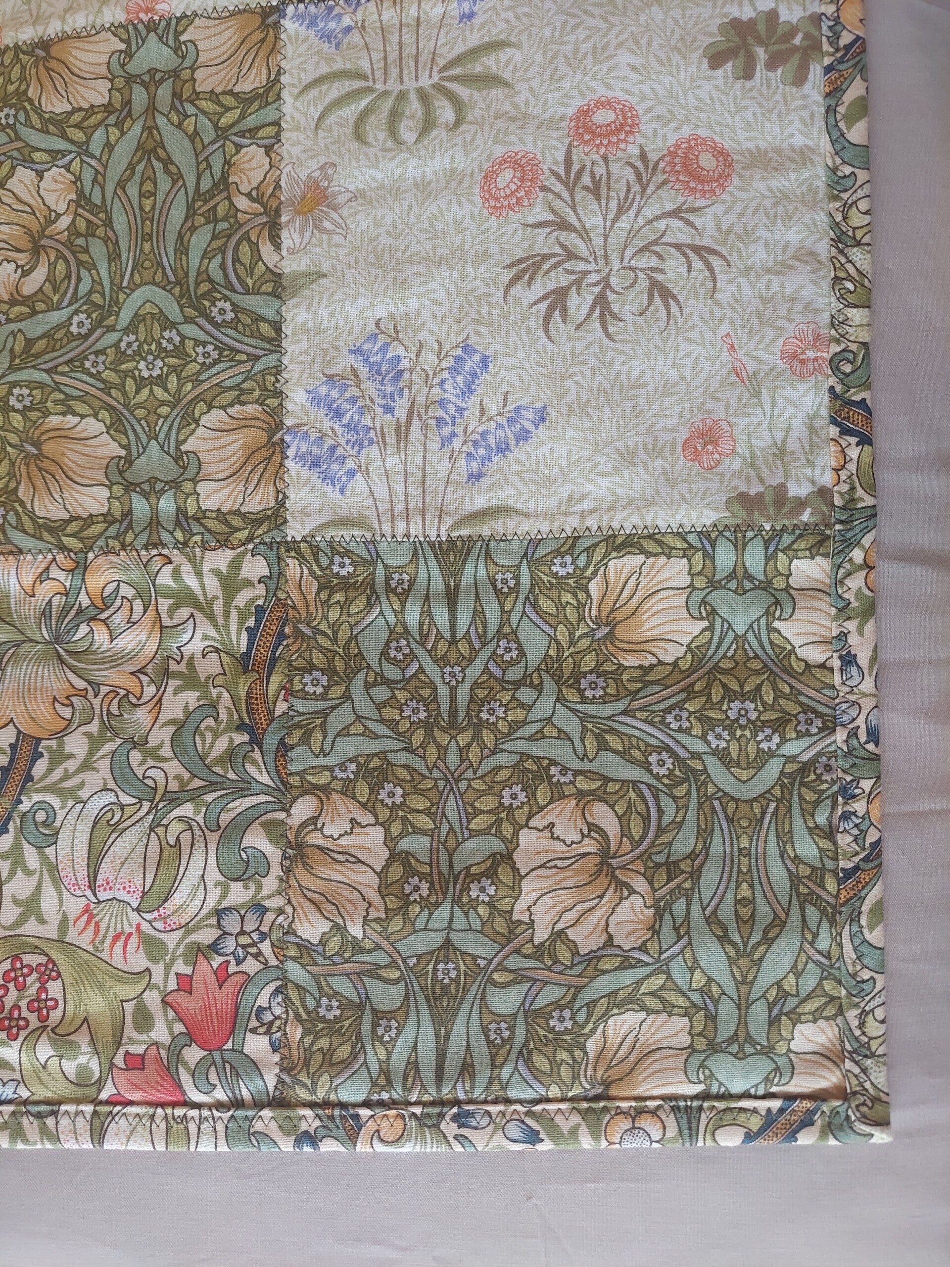 This beautiful 100% cotton, William Morris patchwork throw features six iconic Morris green themed designs: