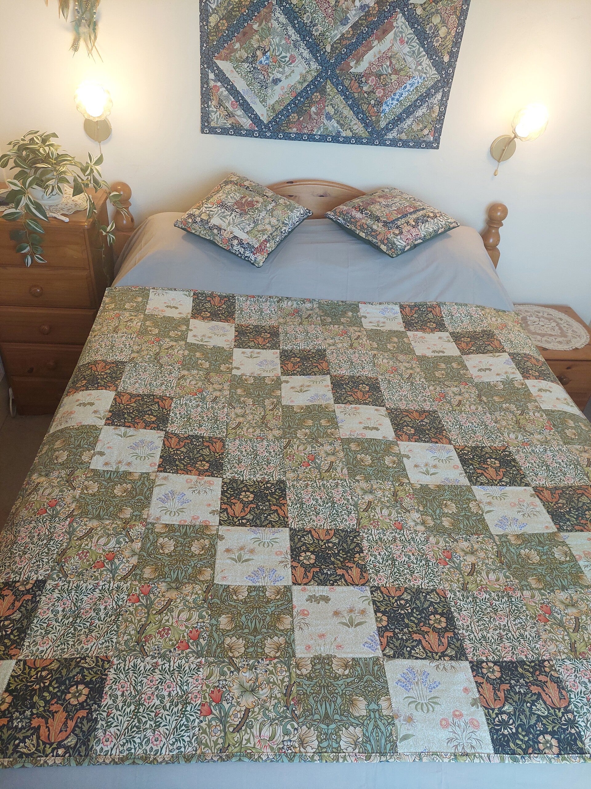 William Morris Green Patchwork Throw/Quilt/Blanket