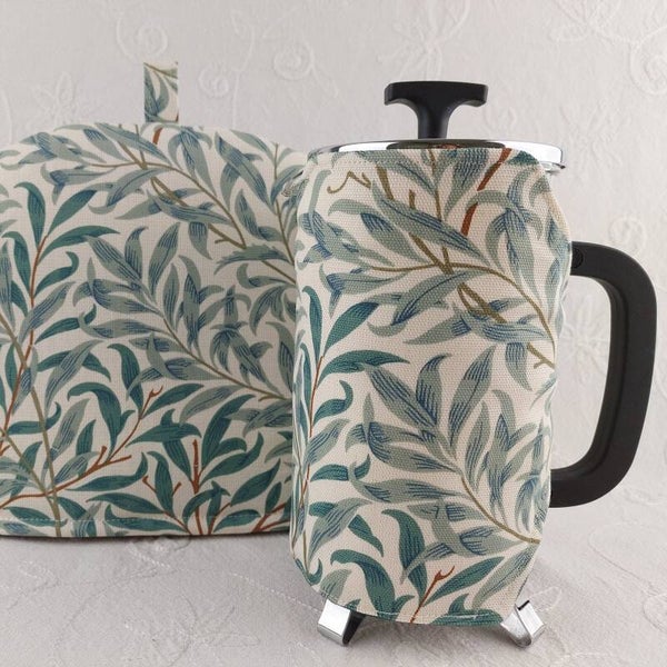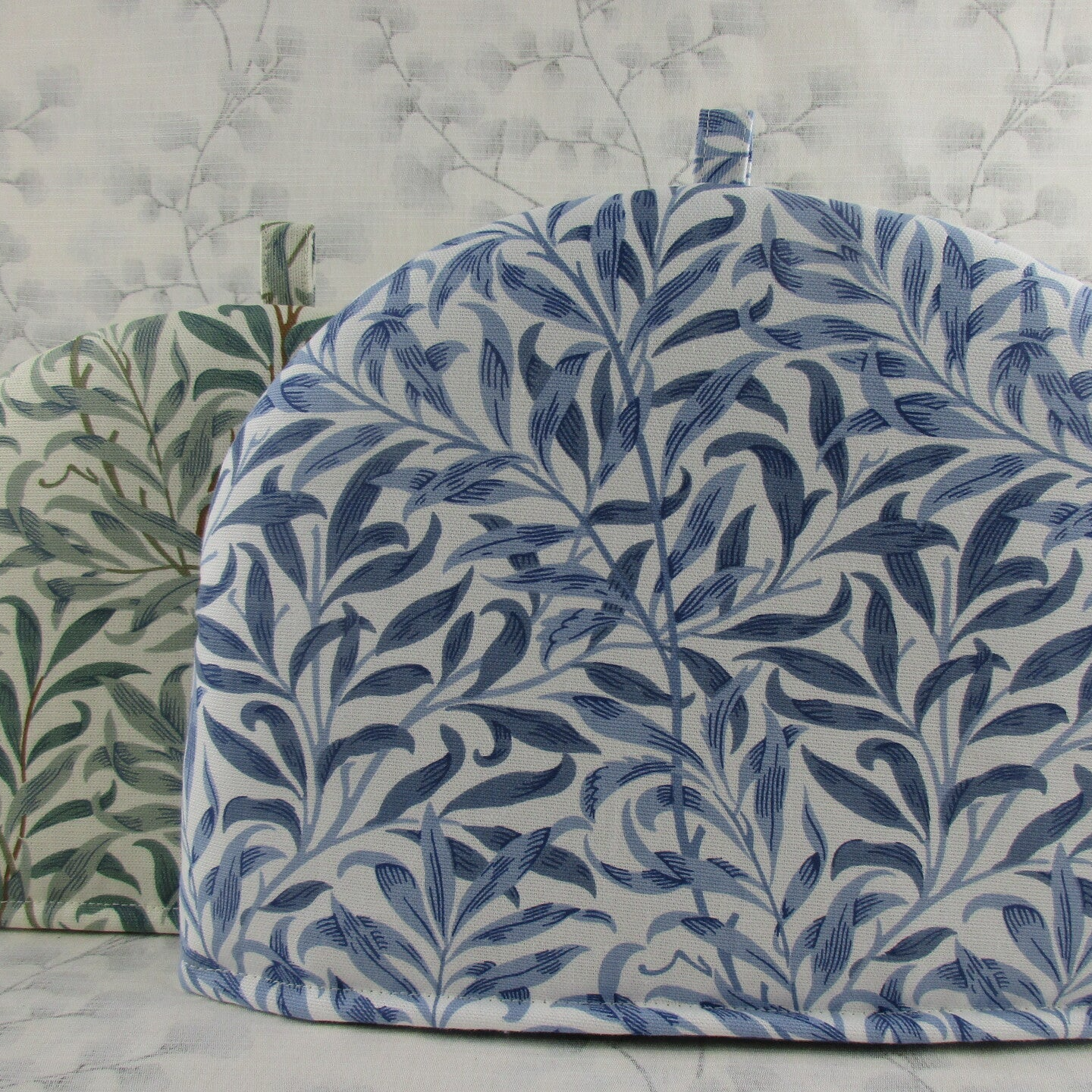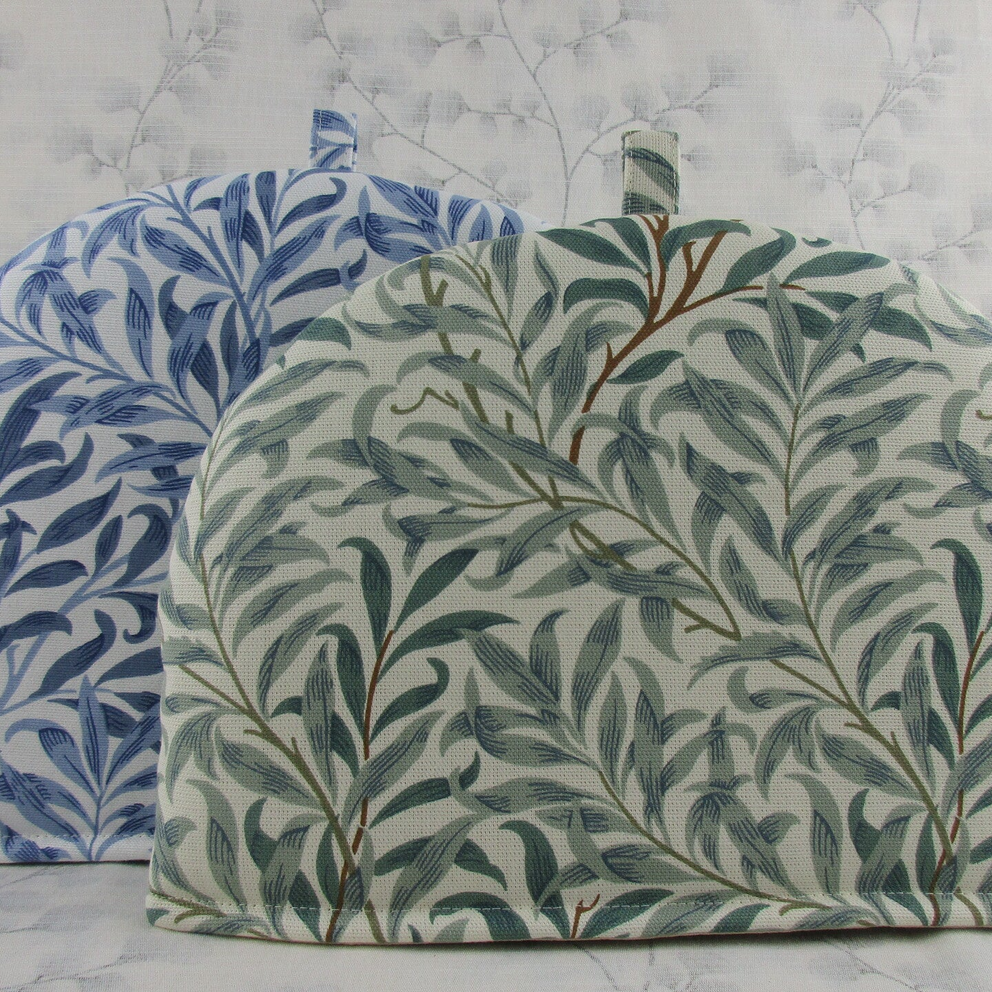 William Morris Fabric Tea Cosy.Willow Boughs, first produced in 1887. With cotton lining and polyester insulation wadding inside to help keep your cuppa warm. Teapot cosies make great gifts and stylish cozy kitchen home decoration accessories.