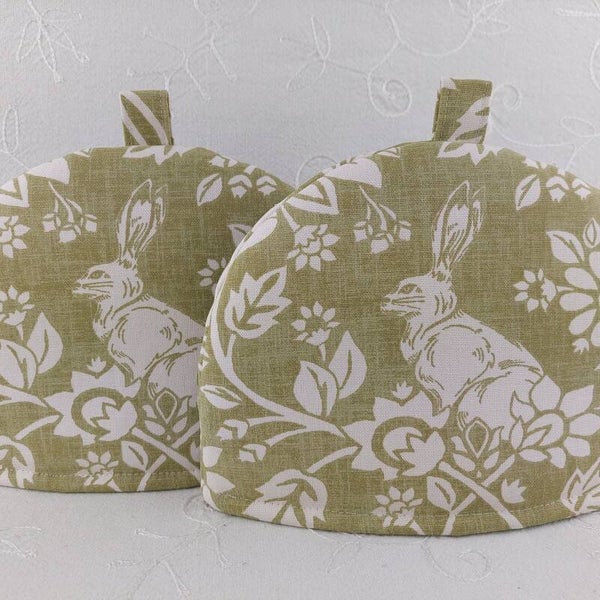 Heathland Hares Fabric Small Tea Cosy with cotton lining and polyester insulation wadding inside to help keep your cuppa warm. Our traditional country cottage style teapot cosies make great gifts and cozy kitchen home decoration accessories.