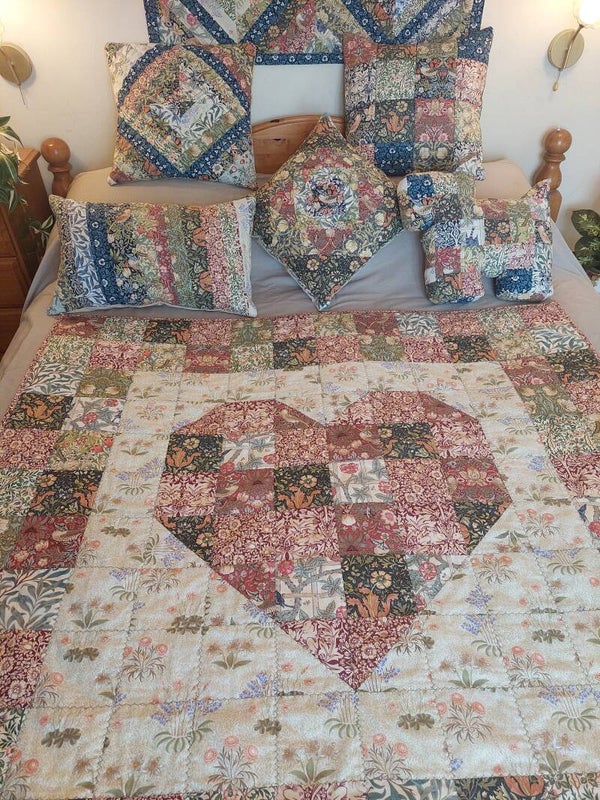 William Morris Quilt/Wall Hanging, Unique One-off Patchwork Throw, 100% Cotton With 10 Morris designs.