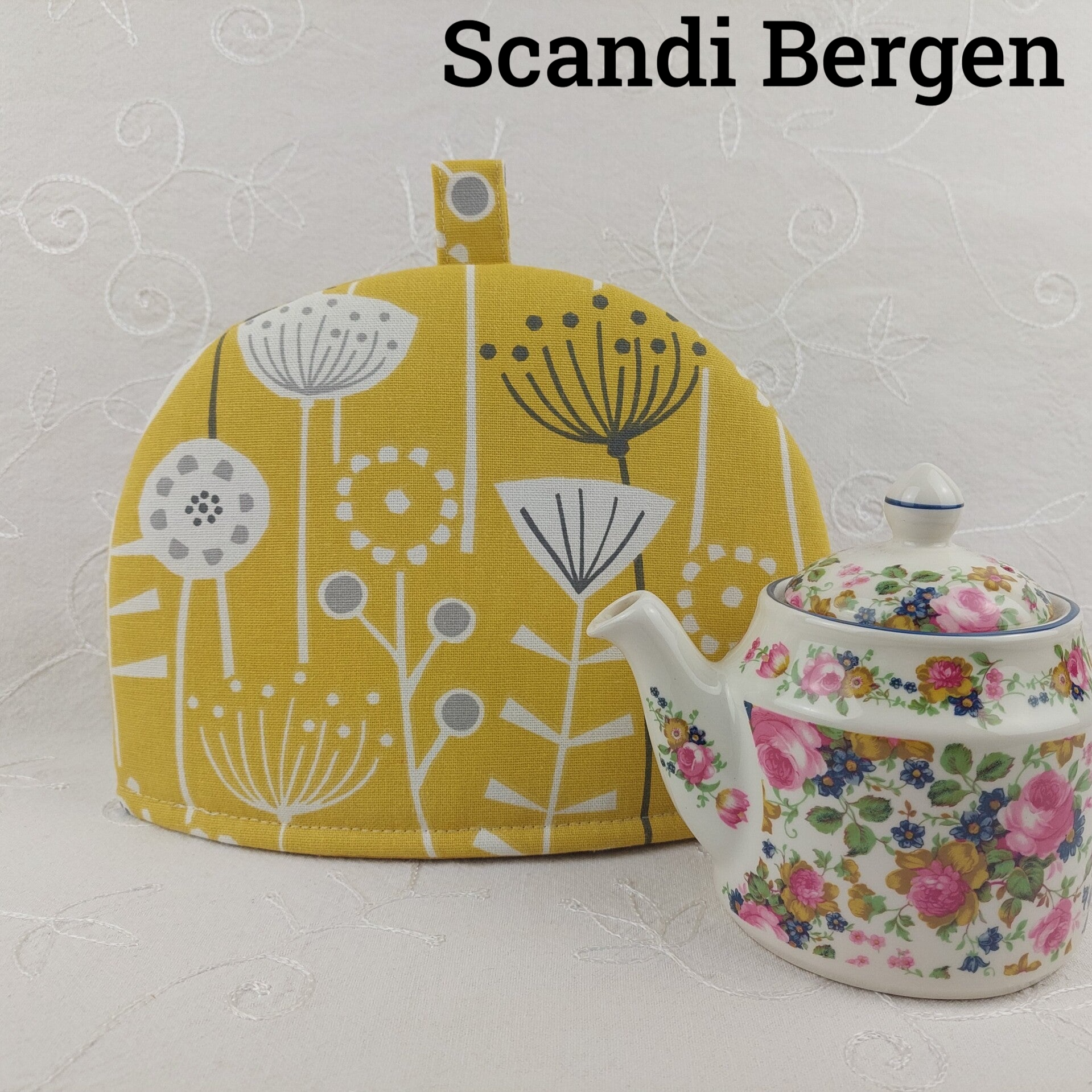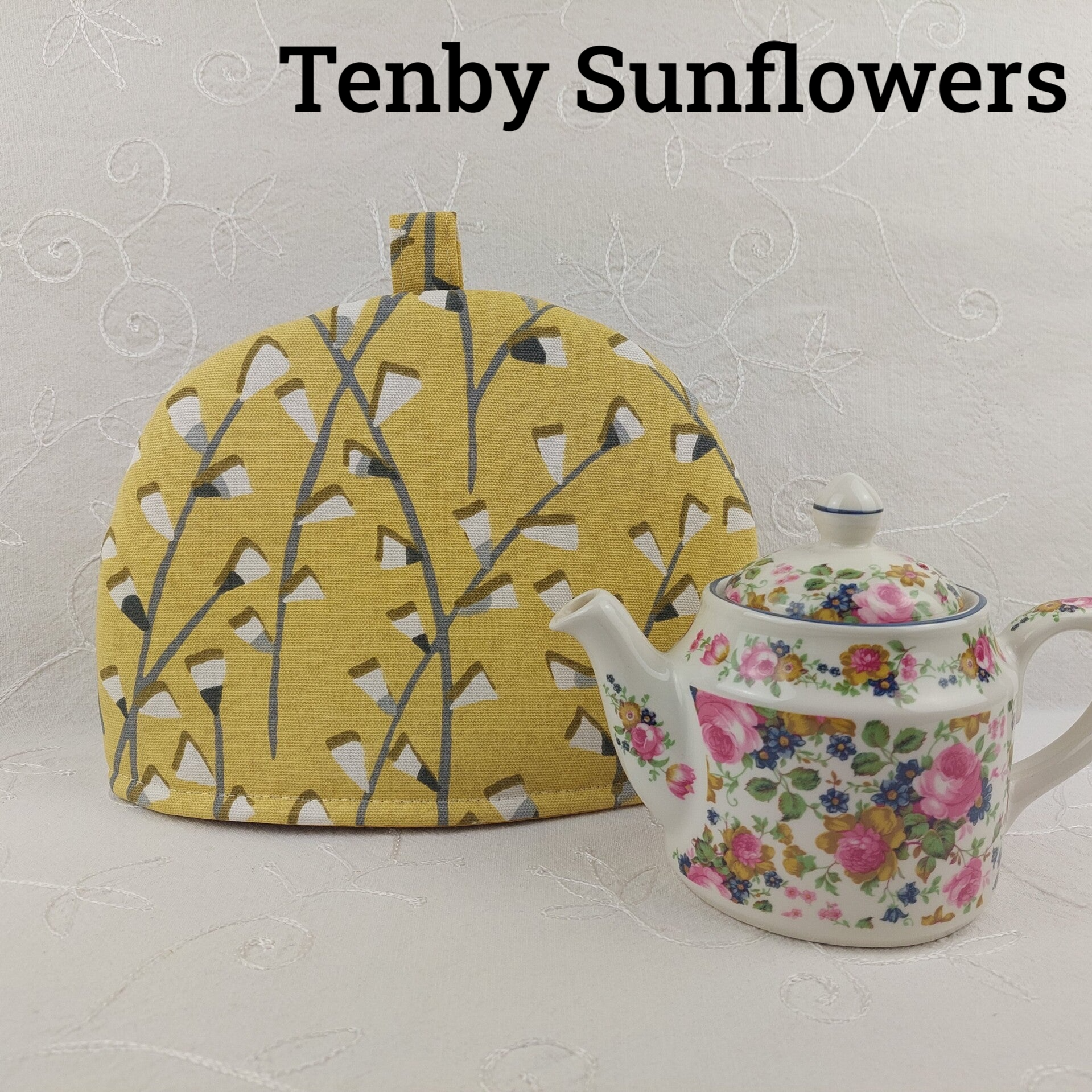 Ochre Yellow Small Tea Cosy with cotton lining and polyester insulation wadding inside to help keep your cuppa warm. Our traditional country cottage style teapot cosies make great gifts and cozy kitchen home decoration accessories.